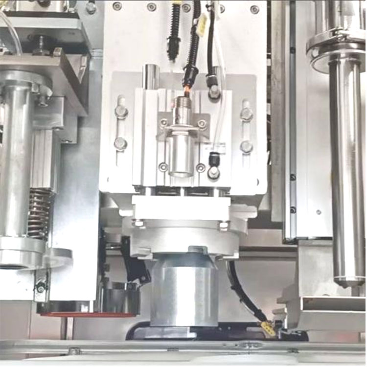Mabda'a shaqada ee miisaanka ayaa loo isticmaalaa si loo xaqiijiyo xakamaynta qadarka buuxinta. Wakhtiga furitaanka waalka buuxinta waxaa gacanta ku haya kontaroolaha barnaamijka ee PLC, shaygana wuxuu ku qulqulaa (ama lagu raraa quudinta bamka) ilaa weelka. Qaybta buuxinta mishiinkani waxay garwaaqsataa buuxinta degdega ah iyo buuxinta tartiib tartiib ah iyada oo loo marayo dhuumo dhumuc iyo dhuuban oo laba jibbaaran, iyo qulqulka buuxinta qunyar socodka ah waa la hagaajin karaa. Waqtiga bilowga ah ee buuxinta, dhuumaha labajibbaaran ayaa la furay isku mar. Ka dib xilliga buuxinta, dhululubada quusitaanka ayaa kor u kacda booska afka foosto, dhuumaha cayriin waa la xiray, iyo dhuumaha khafiifka ah waxay sii wadaan inay si tartiib ah u buuxiyaan ilaa inta la dejinayo mugga buuxinta guud. Daboolka si toos ah ayaa loo sameeyaa dhamaadka buuxinta.